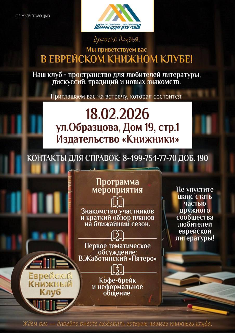 Поэтому сегодня проводит свое первое заседание «Книжный еврейский клуб» центра «Шаарей Цедек».